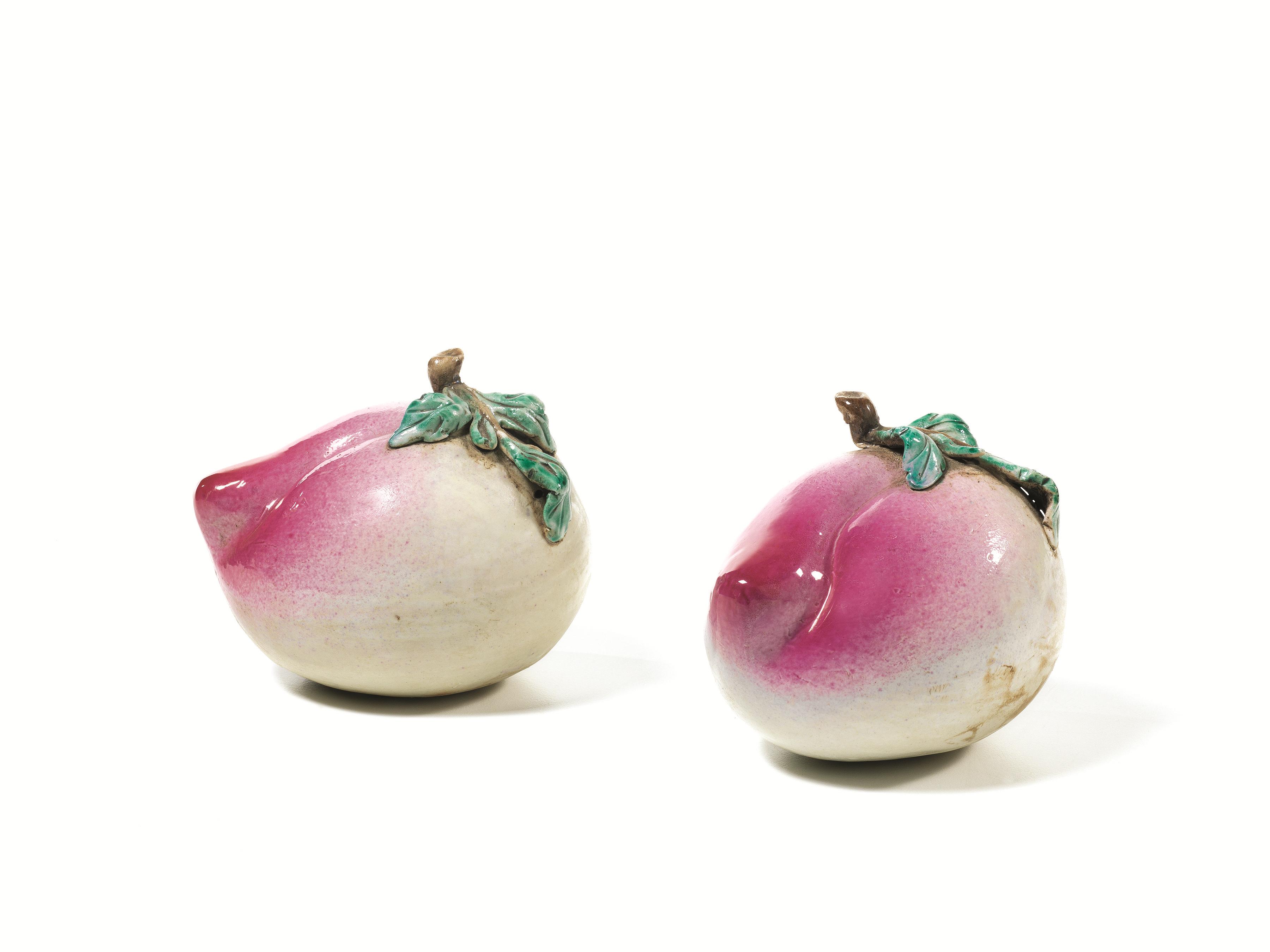 DUE PESCHE CINA DINASTIA QING DINE SEC. XIX in porcellana alt. cm 8,5 Two...