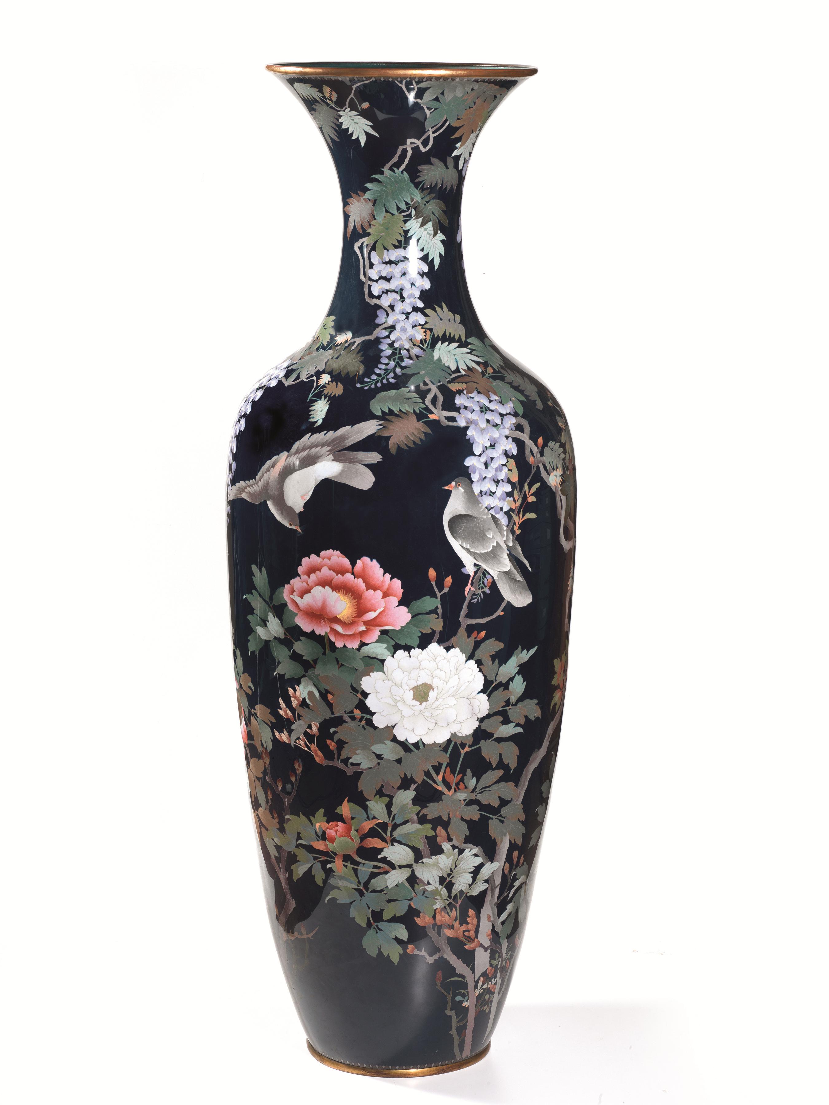 GRANDE VASO, GIAPPONE, SEC. XIX, PERIODO MEIJI in metallo smaltato, decorato...