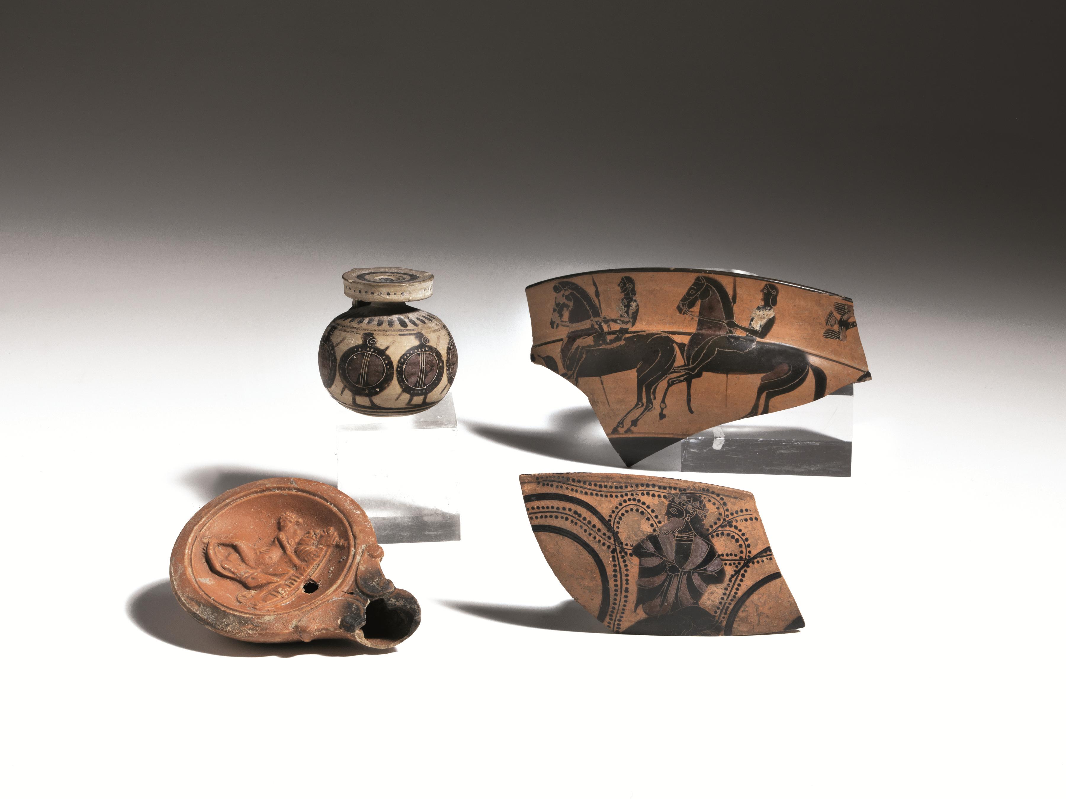 DUE FRAMMENTI DI CERAMICA ATTICA, UN ARYBALLOS E UNA LUCERNA Materia e...