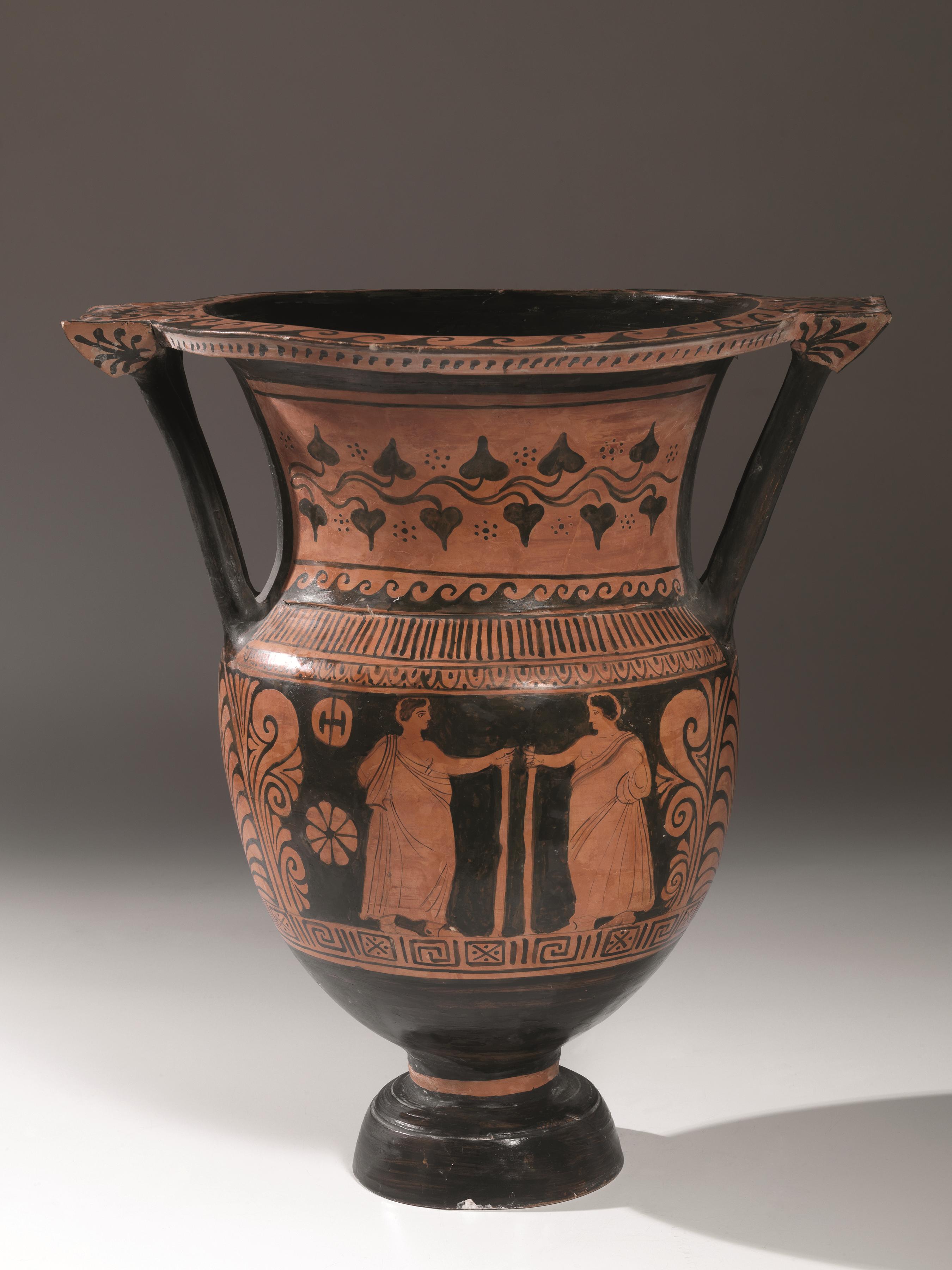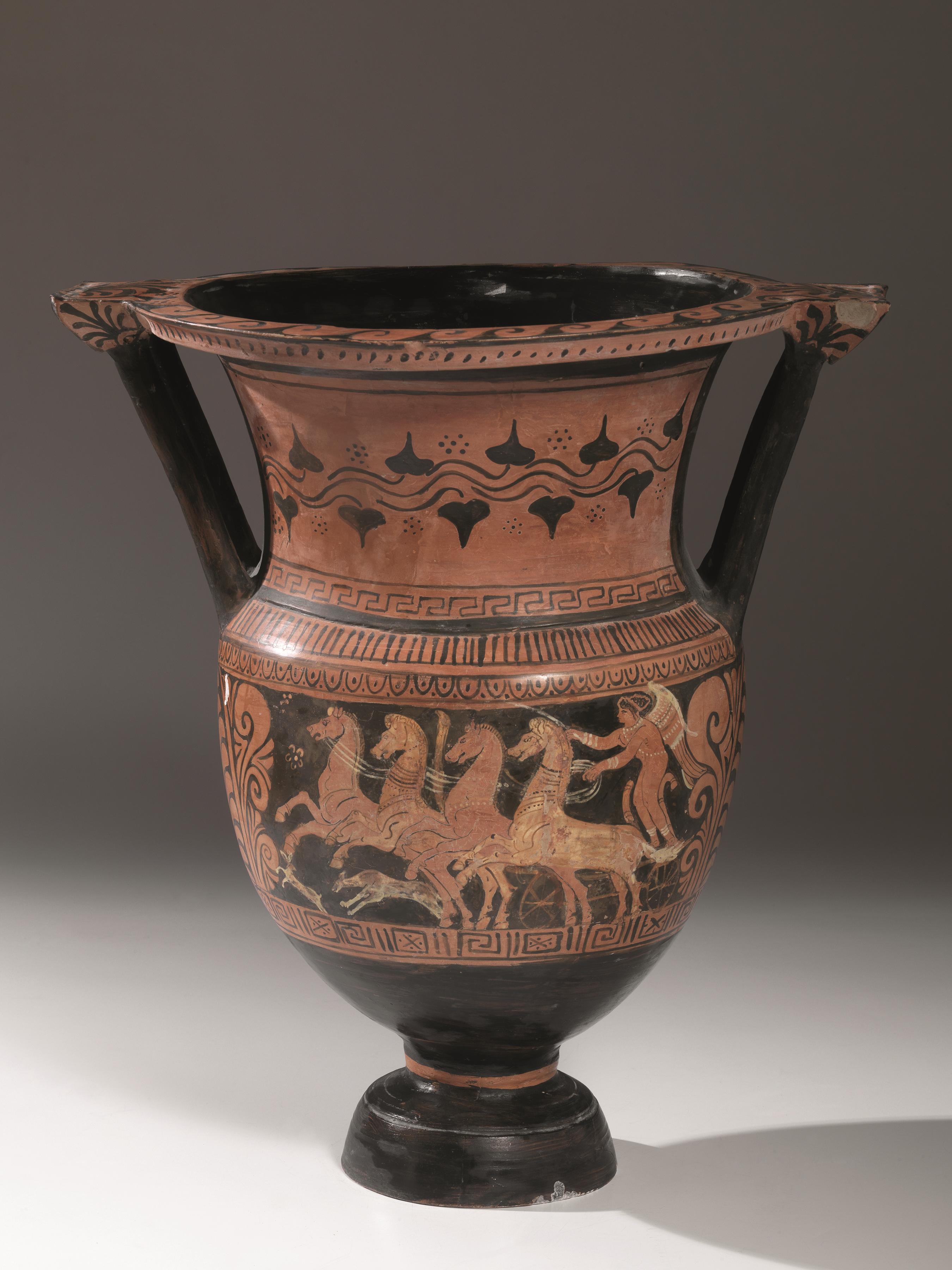 GRANDE CRATERE A COLONNETTE APULO A FIGURE ROSSE Materia e tecnica: argilla...