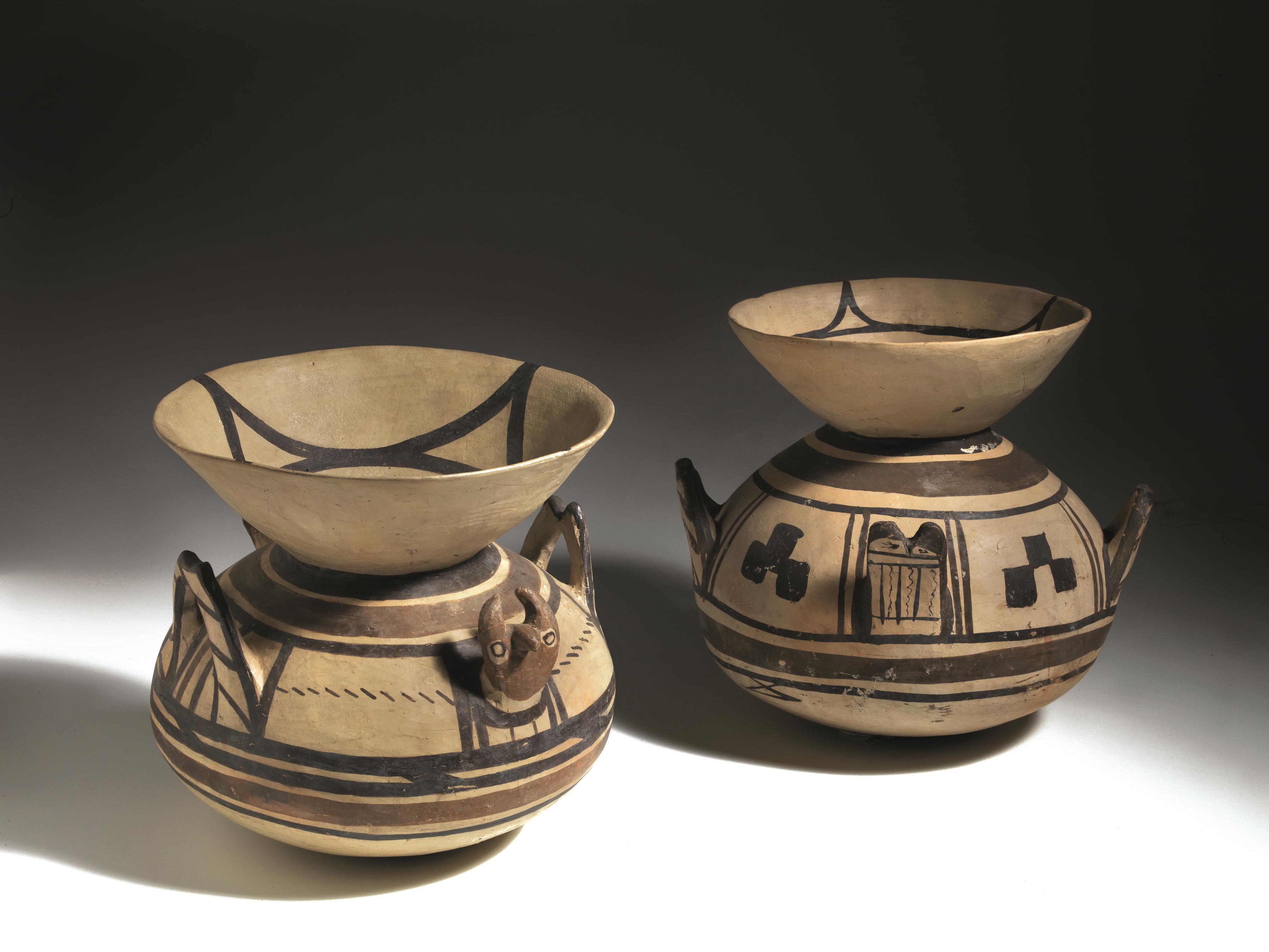Materia e tecnica: argilla beige chiaro; ingubbiatura camoscio, vernice bruna e paonazza, modellate a tornio lento