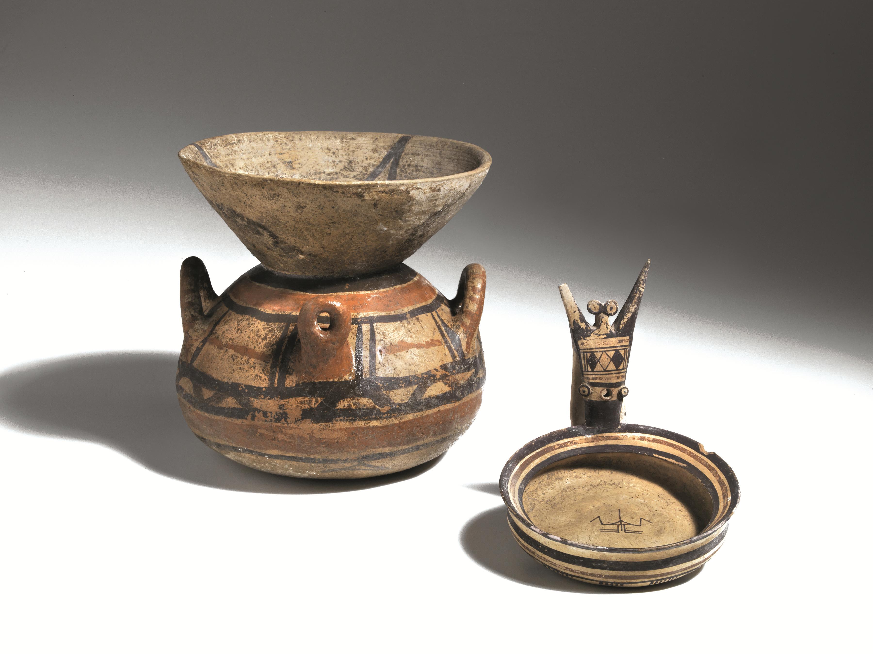 Stato di conservazione: olla integra; attingitoio con lacune sull’ansa e sull’orlo
