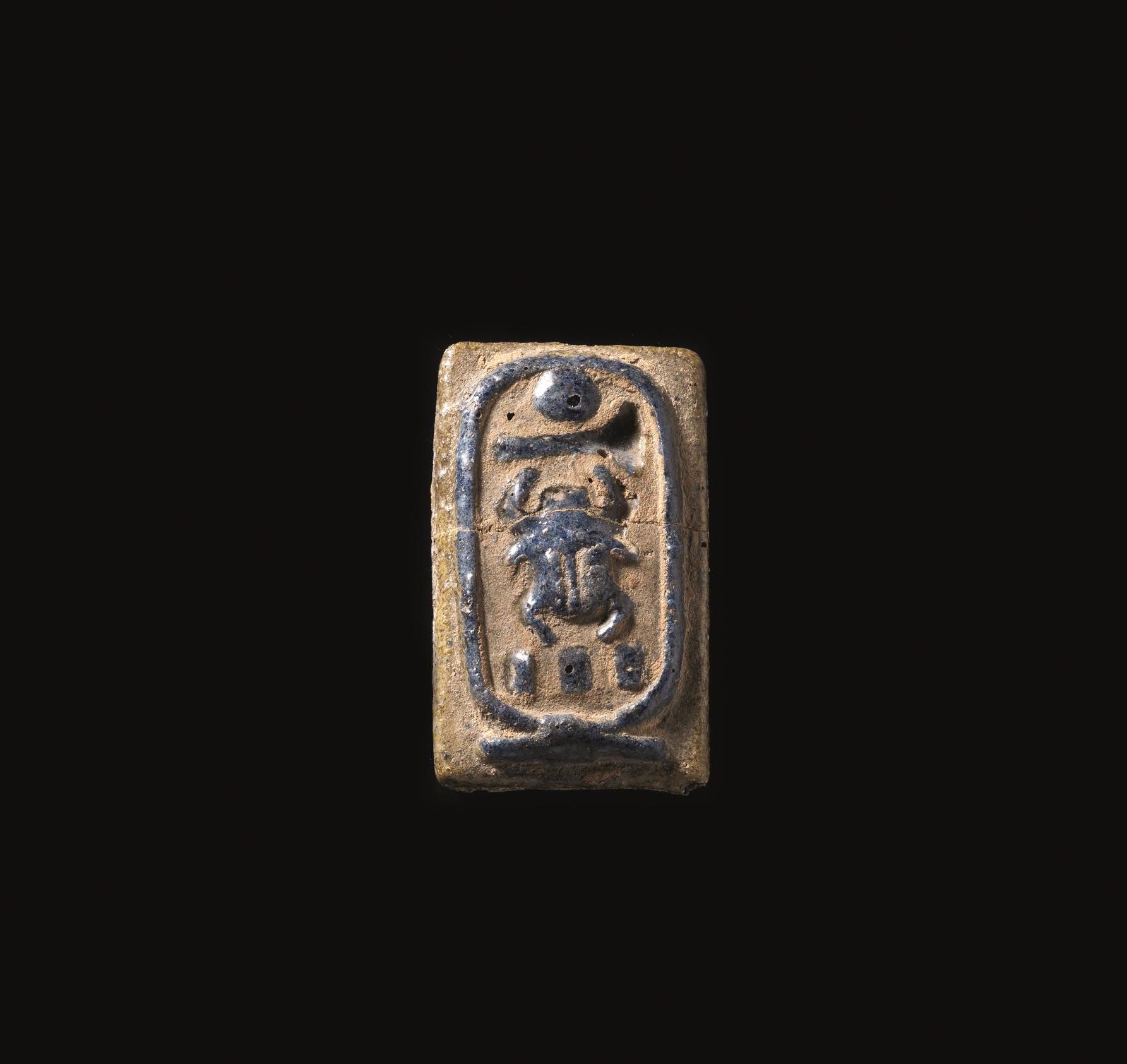 CARTIGLIO REALE Materia e tecnica: faience egiziana modellata a stampo...