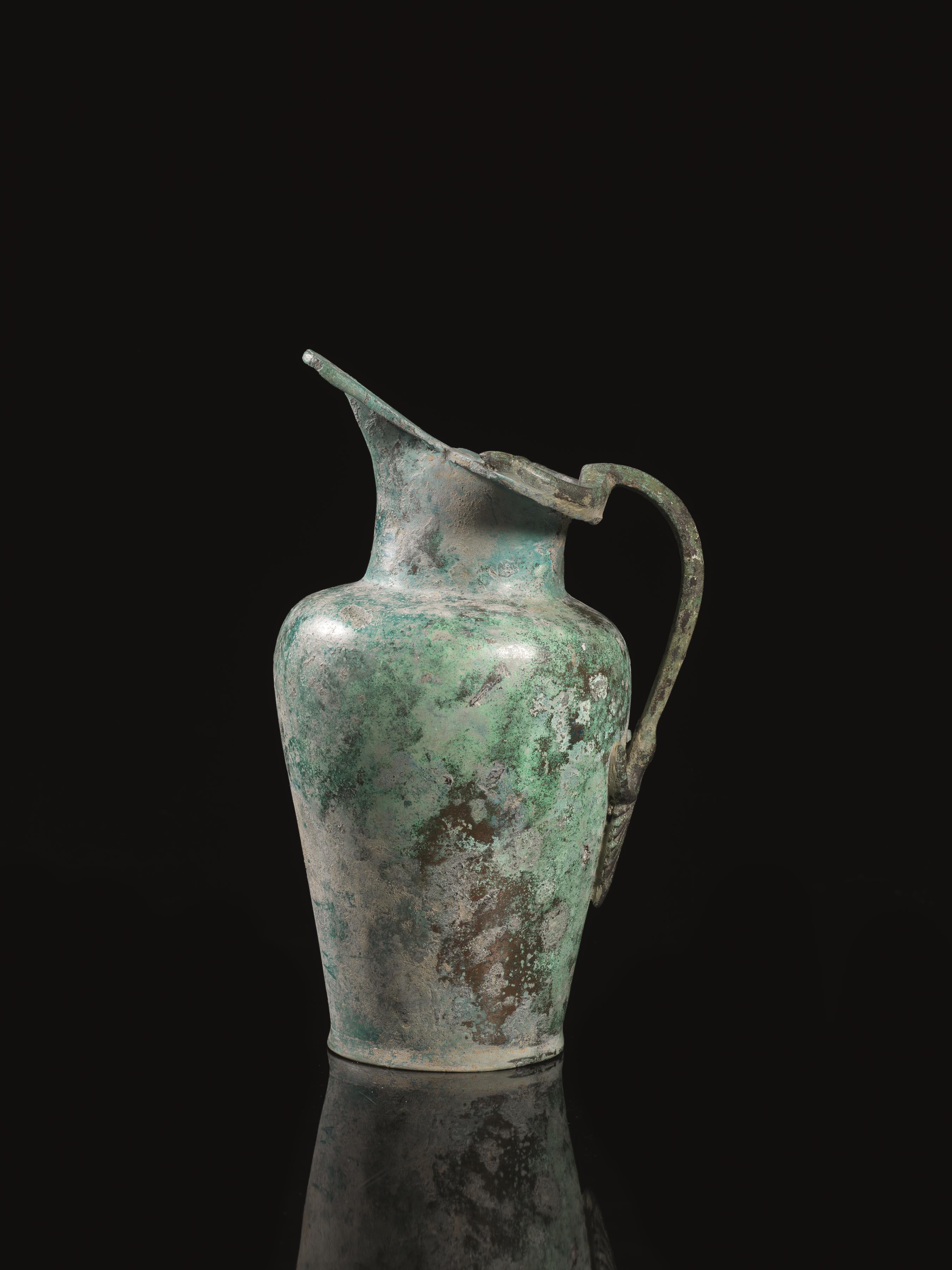 OINOCHOE A BECCO TIPO SCHNABELKANNE Materia e tecnica: lamina di bronzo...