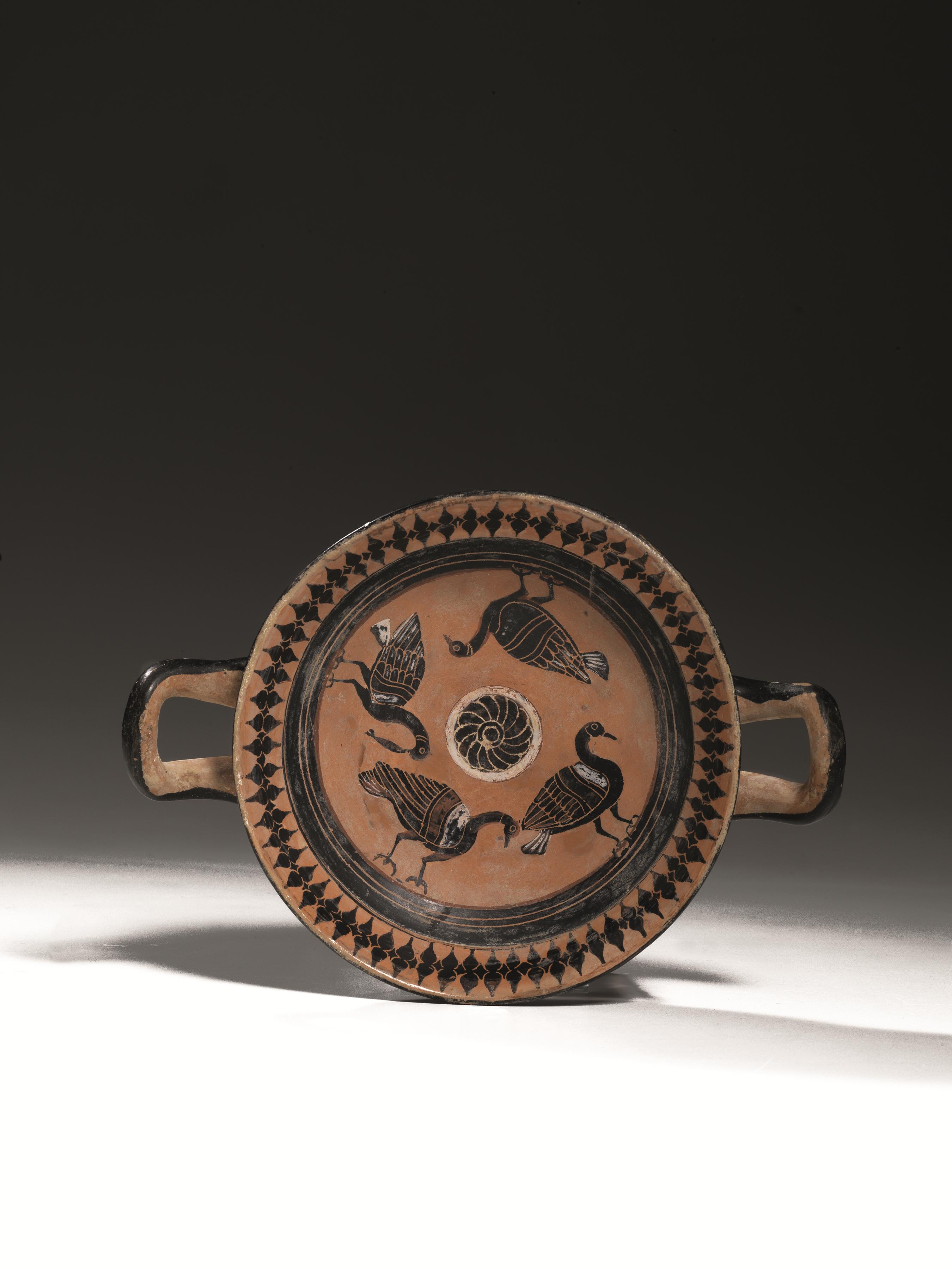 KYLIX A FIGURE NERE Materia e tecnica: argilla figulina arancio; vernice nera...