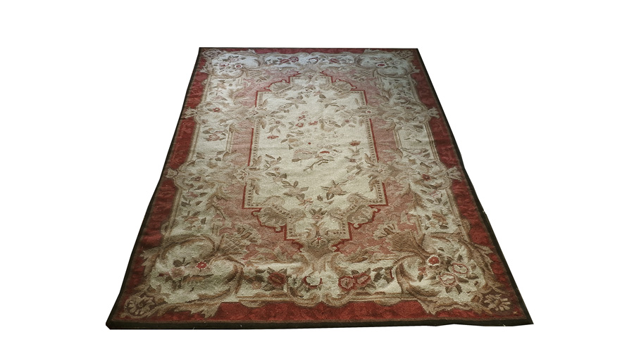TAPPETO A PICCOLO PUNTO IN STILE AUBOUSSON fondo avorio, campo con motivi floreali nei toni del rosa, avorio e beige cm 187x117 AUBOUSSON STYLE CARPET