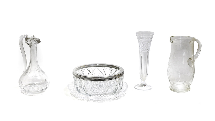Lotto 43 | LOTTO DI OGGETTI IN CRISTALLO una coppa da macedonia rilegata in argento, un...