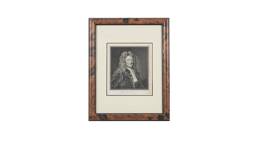 RITRATTO DI CHRISTOPHER WREN XVIII secolo incisione in cornice cm 19x17...