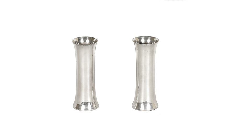 COPPIA DI VASI IN SHEFFIELD DI FORMA SVASATA, lievi difetti h cm 18 PAIR OF SHEFFIELD VASES
