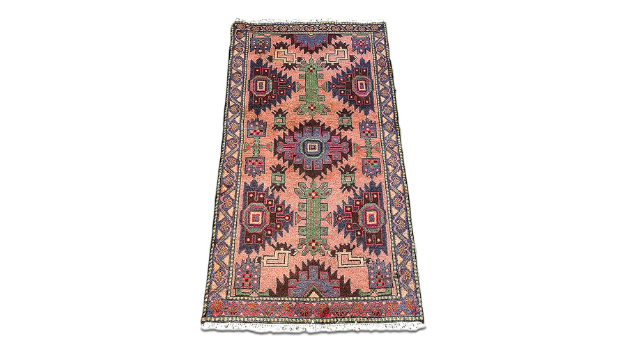 TAPPETO PERSIANO ZANGIAN fondo rosso mattone, campo con motivi geometrici nei toni del rosso, blu, verde e marrone cm 150x80 PERSIAN ZANGIAN CARPET