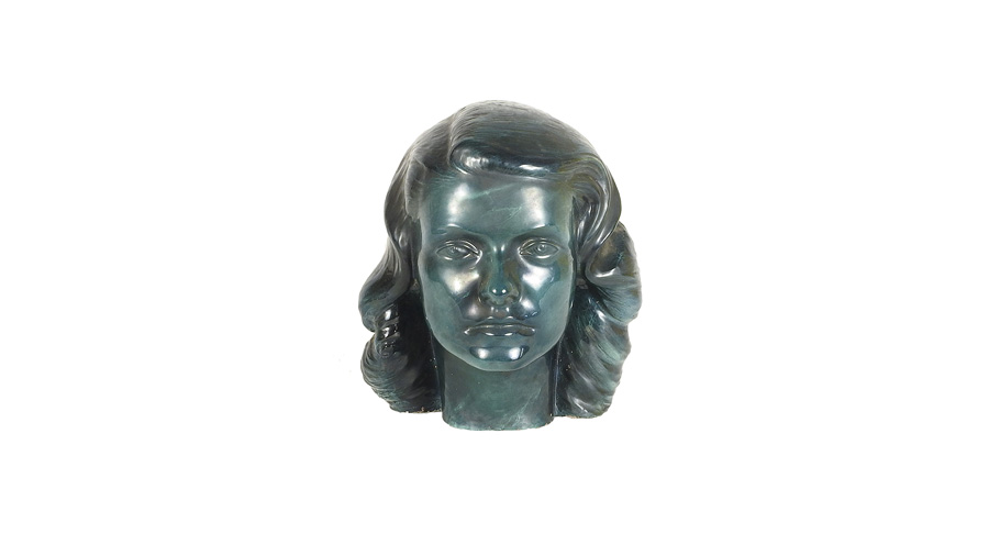 GRUPPO IN CERAMICA INVENTRIATA IN VERDE prima metà del XX secolo raffigurante un volto femminile h cm 25 GLAZED CERAMIC FIGURAL GROUP, FIRST HALF OF 20TH CENTURY