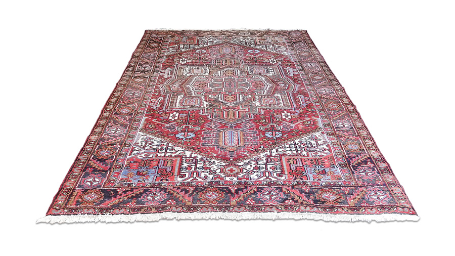 TAPPETO PERSIANO HERIZ fondo rosso, campo con medaglione centrale e motivi...