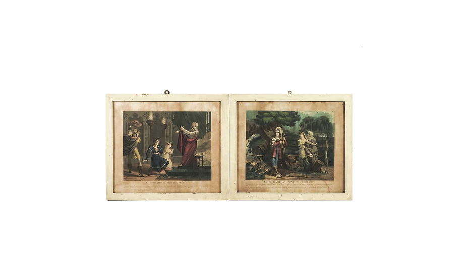 ELODIA E IL SOLITARIO XIX secolo coppia di litografie francesi, in cornice,...
