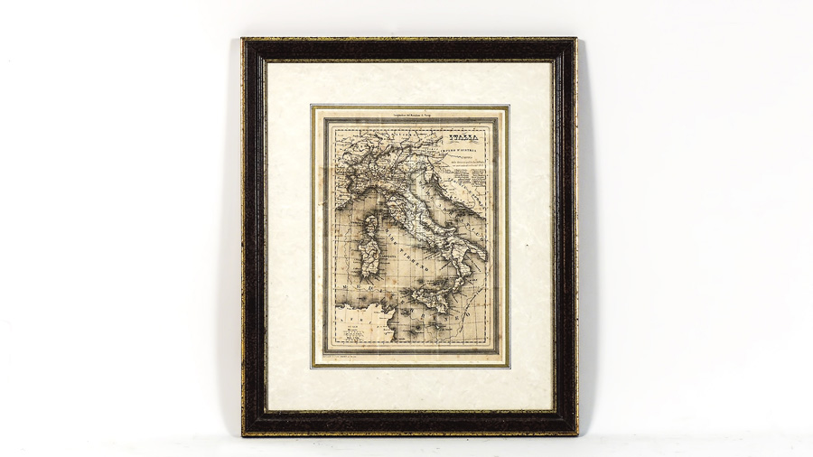 CARTA GEOGRAFICA DELL'ITALIA seconda metà del XIX secolo incisione, in cornice, difetti cm 30x22 PLANT OF ITALY, SECOND HALF OF 19TH CENTURY, ENGRAVING