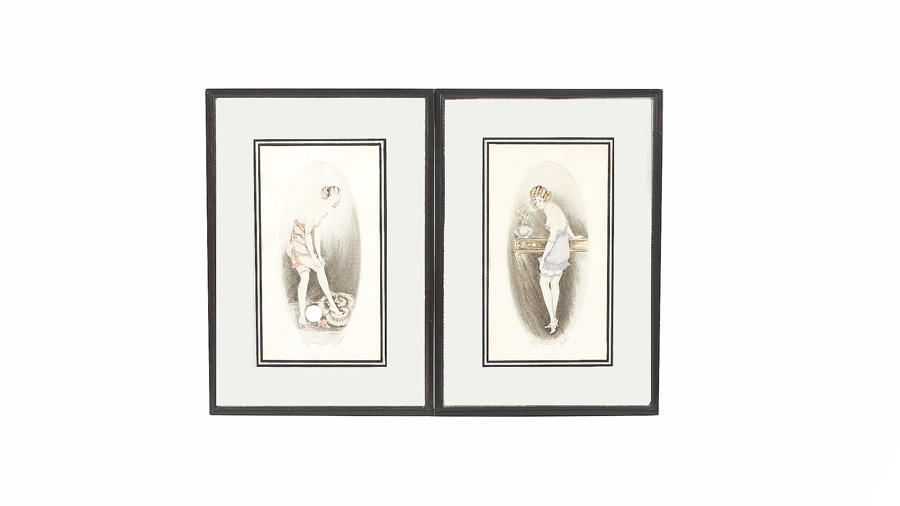 FIGURE FEMMINILI inizio del XX secolo coppia di incisioni, es 25/98, es 38/98, firmate, in cornice cm 31,5x14,5 FEMALE FIGURES, BEGINNING OF 20TH CENTURY, A PAIR OF ENGRAVINGS