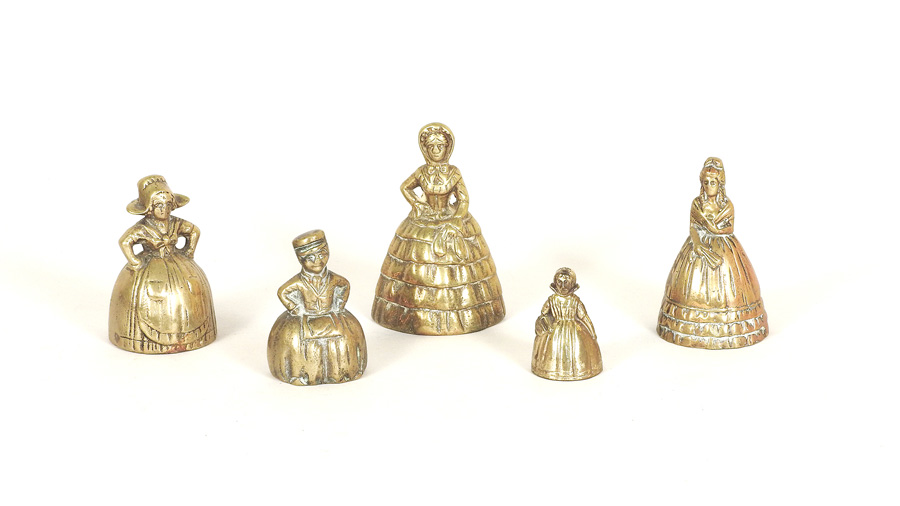 CINQUE BAMBOLE CAMPANELLO IN OTTONE Inghilterra, fine del XIX secolo di cui...