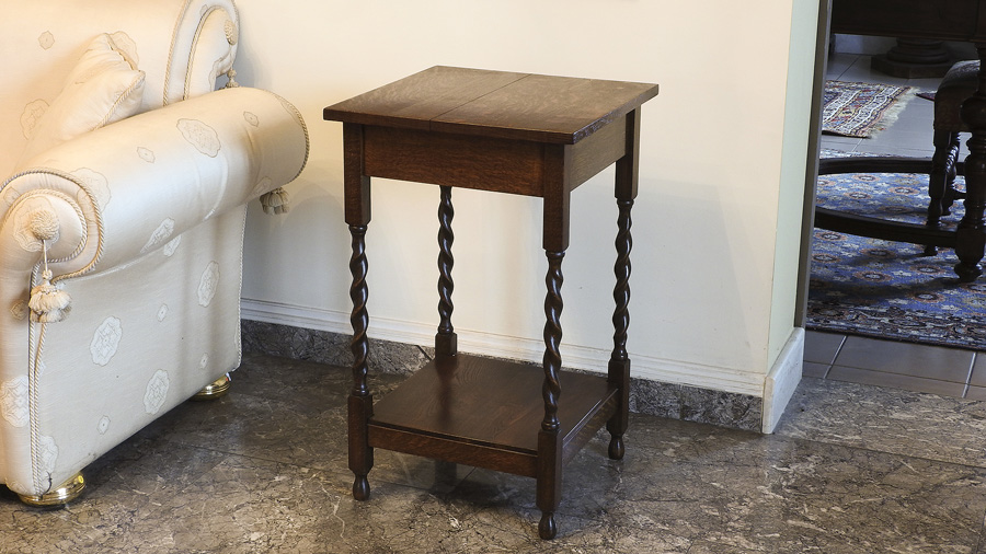 Lotto 226 | TAVOLINO QUADRATO DA APPOGGIO IN ROVERE sostegni a torciglione riuniti da...