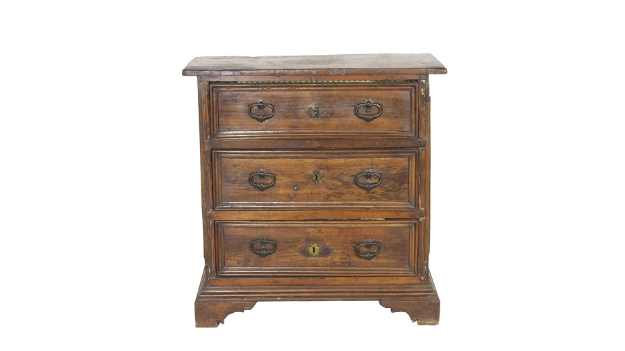 PICCOLO CASSETTONE IN NOCE XVII secolo tre cassetti sul fronte, piedi a mensola, alcuni restauri h cm 90x87x45,5 WALNUT CHEST OF DRAWERS, 18TH CENTURY