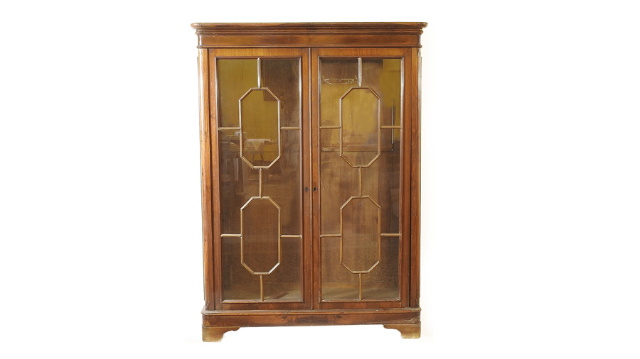 LIBRERIA IMPIALLACCIATA IN NOCE metà del XIX secolo due ante a vetro con...