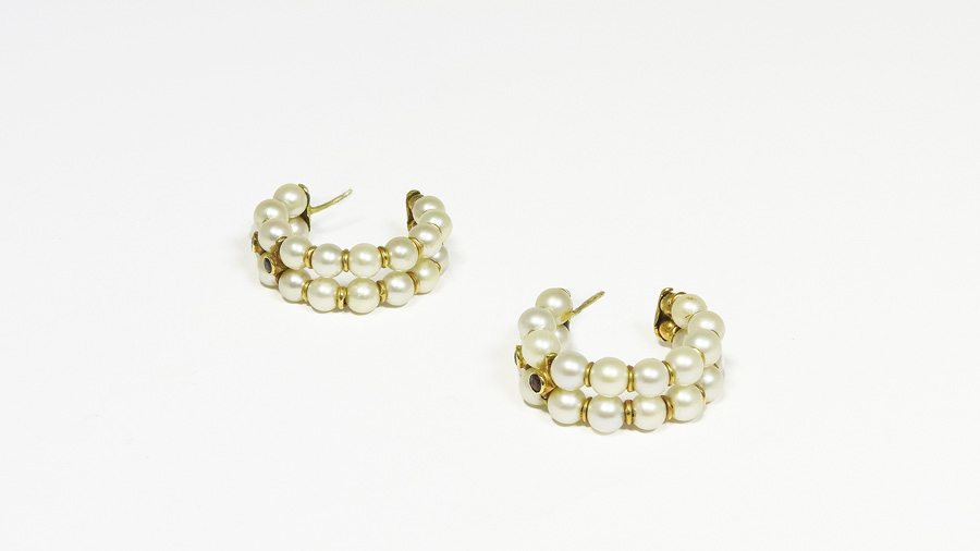 PAIO DI ORECCHINI A CERCHIO IN ORO realizzati con una duplice fila di perle PAIR OF GOLD AND PEARLS EARRINGS