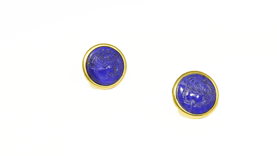 Lotto 349 | PAIO DI ORECCHINI IN ORO realizzati con due cammei rotondi in lapislazzuli...