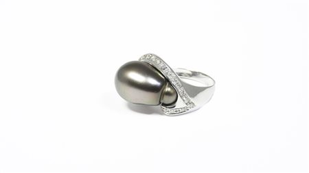 ANELLO IN ORO BIANCO CON PERLA NERA BAROCCA COLTIVATA DI TAHITI E DIAMANTI gr 12,40 WHITE GOLD RING WITH A BAROQUE BLACK CULTURED PEARL AND DIAMONDS