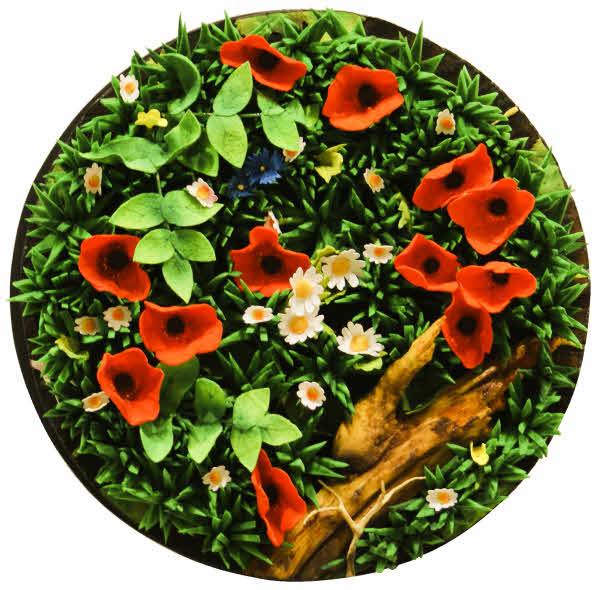 Piero Gilardi - Prato fiorito - 1993 tappeto natura cm. diam. 50. Autentica dell’artista su foto. Firma sul retro