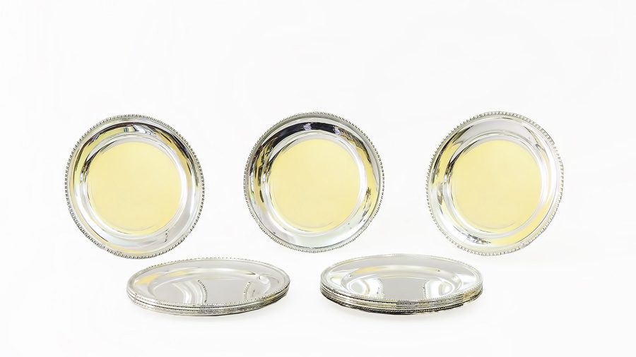 SERIE DI DODICI PIATTI IN ARGENTO BORDO A CORDA gr 2460, diam cm 20 A SET OF TWELVE SILVER PLATES