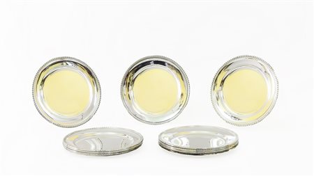 SERIE DI DODICI PIATTI IN ARGENTO BORDO A CORDA gr 2460, diam cm 20 A SET OF...