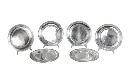 SERIE DI DODICI SOTTOPIATTI IN ARGENTO bordi sbalzati con motivo a palmette...