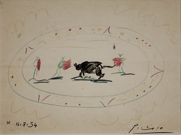 Pablo Picasso - Senza titolo - 1954 pastelli grassi su carta cm. 23x30 Firma...