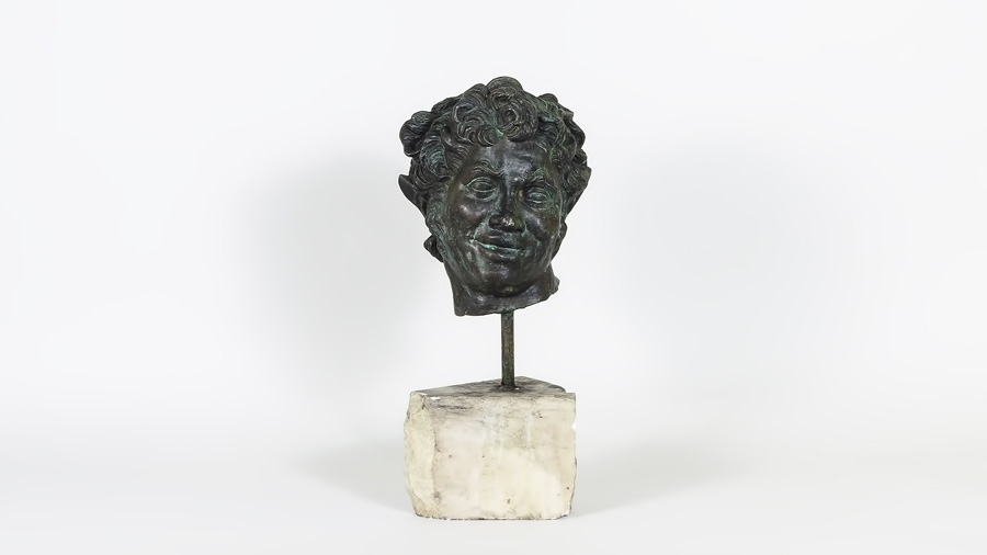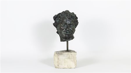VOLTO DI FAUNO SCULTURA IN BRONZO su base in marmo h esclusa la base cm 23 HEAD OF A FAUN, BRONZE SCULPTURE