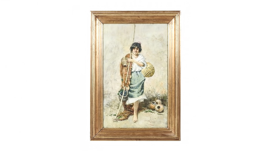 CONTADINELLA olio su tela, in cornice cm 60x38 Country Girl, oil on canvas