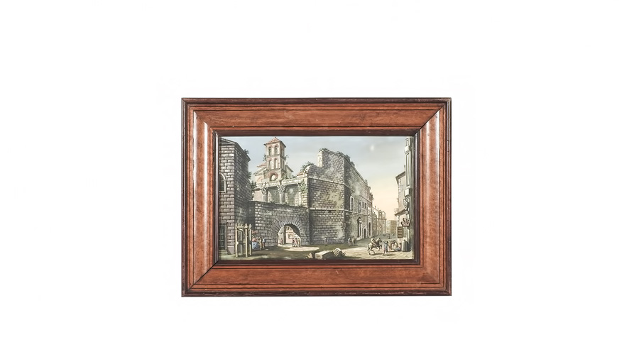 SCORCIO ROMANO gouache su carta, in cornice cm 26x40 ROME VIEW, GOUACHE ON PAPER