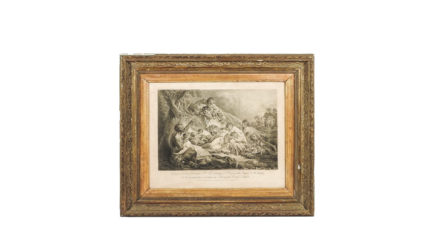 BACCANALE XIX secolo incisione francese, in cornice cm 33x42 BACCHANALIA,...