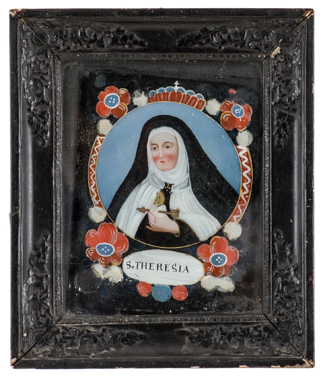 PITTURA su vetro "Santa Teresa". XIX secolo Misure: cm 22,5 x 27