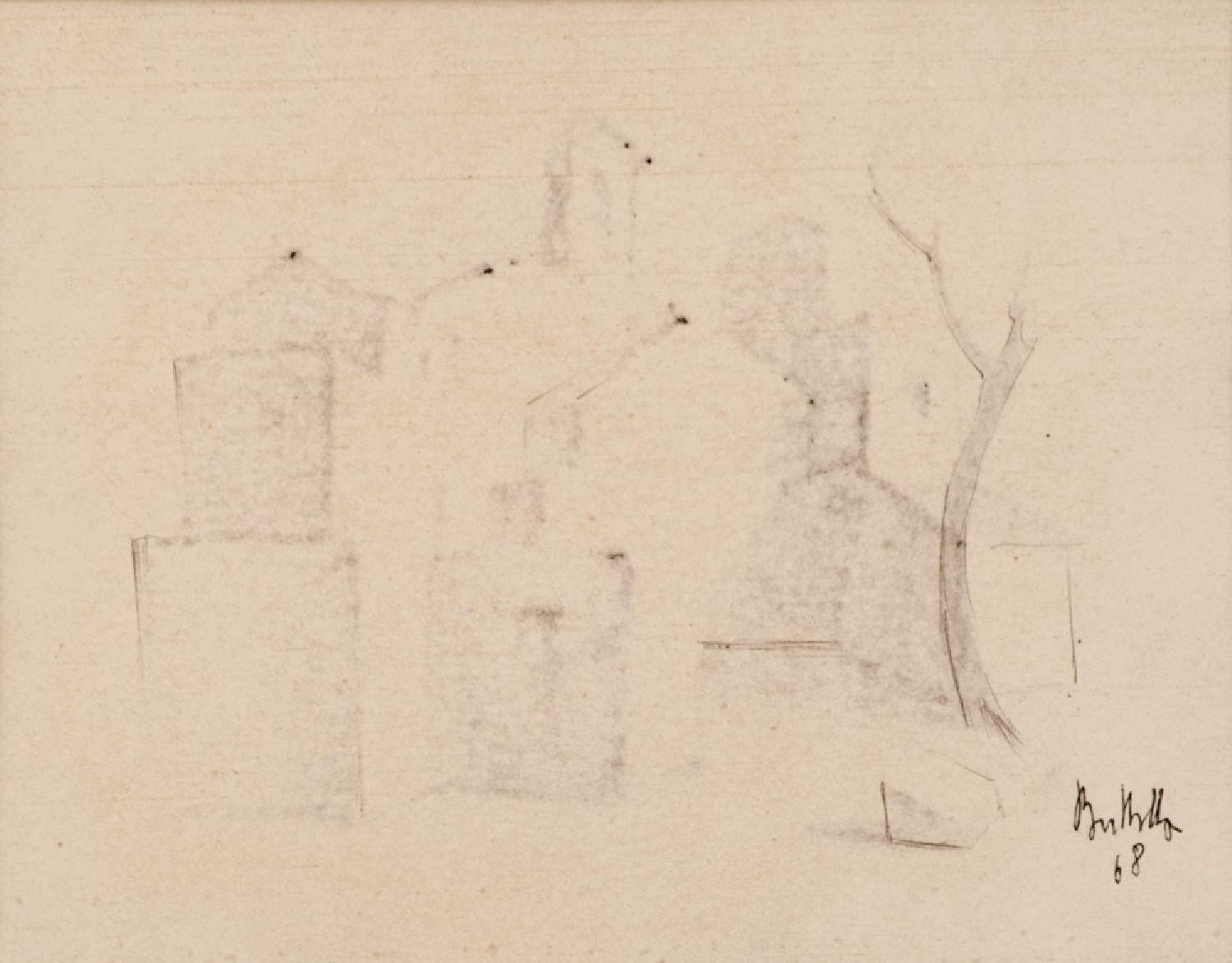 PIETRO BUTTITTA (Palermo 1915 - 1997) DISEGNO su carta "studio di caseggiato", firmato in basso a destra. Datato 1968 Misure: cm 18,5 x 14,5