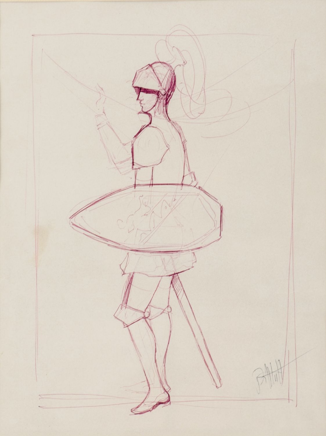 PIETRO BUTTITTA (Palermo 1915 - 1997) DISEGNO su carta "studio di cavaliere", firmato in basso a destra. Misure: cm 21,5 x 28,5