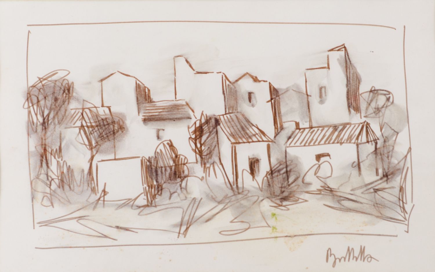 PIETRO BUTTITTA (Palermo 1915 - 1997) TECNICA mista su carta "caseggiato", firmato in basso a destra. Misure: cm 31,5 x 19,5