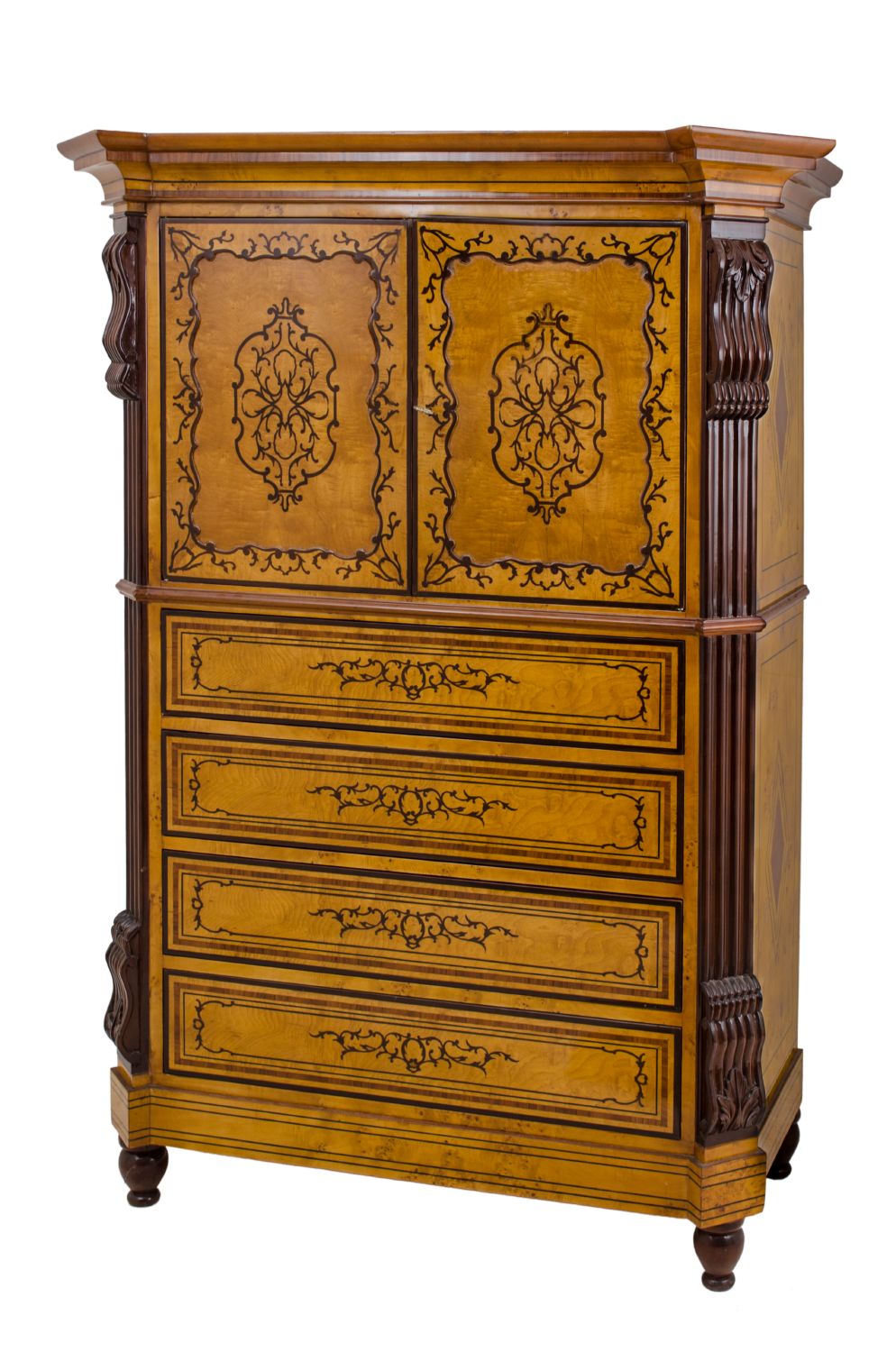 CHIFFONIERE stile Carlo X in acero con perfili in palissandro con quattro cassetti e due ante. Sicilia XX secolo Misure: cm 134 x 62 x h 180