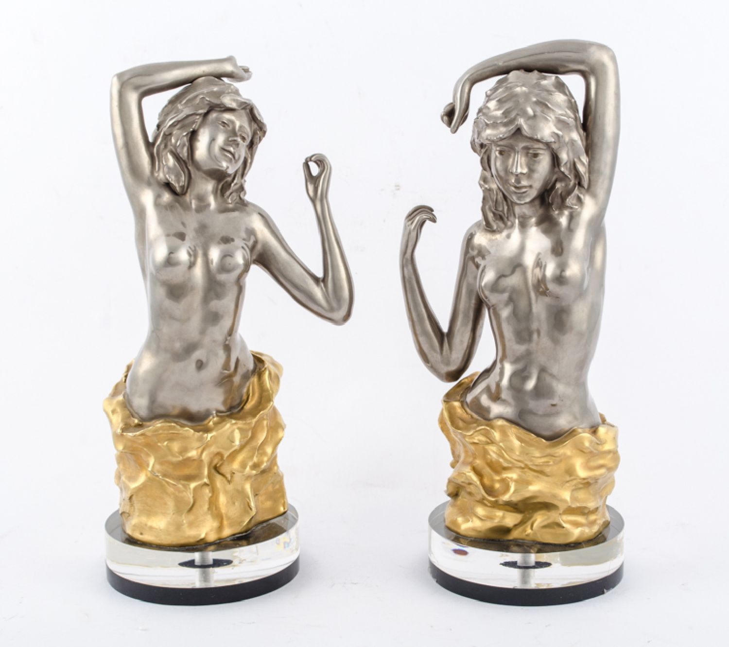 GIANNI VISENTIN (1938) COPPIA SCULTURE in metallo raffiguranti "figure femminili". Misure: h cm 30