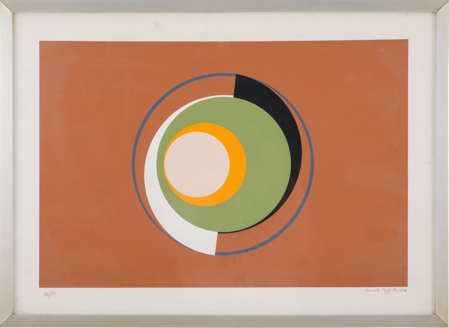 CARMELO CAPPELLO (Ragusa 1912 - Milano 1996) LITOGRAFIA a colori "forme circolari", esemplare 77/90. Datato 1973 Misure: cm 69 x 49