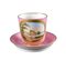 TAZZINA con piattino in porcellana rosa con medaglione raffigurante...