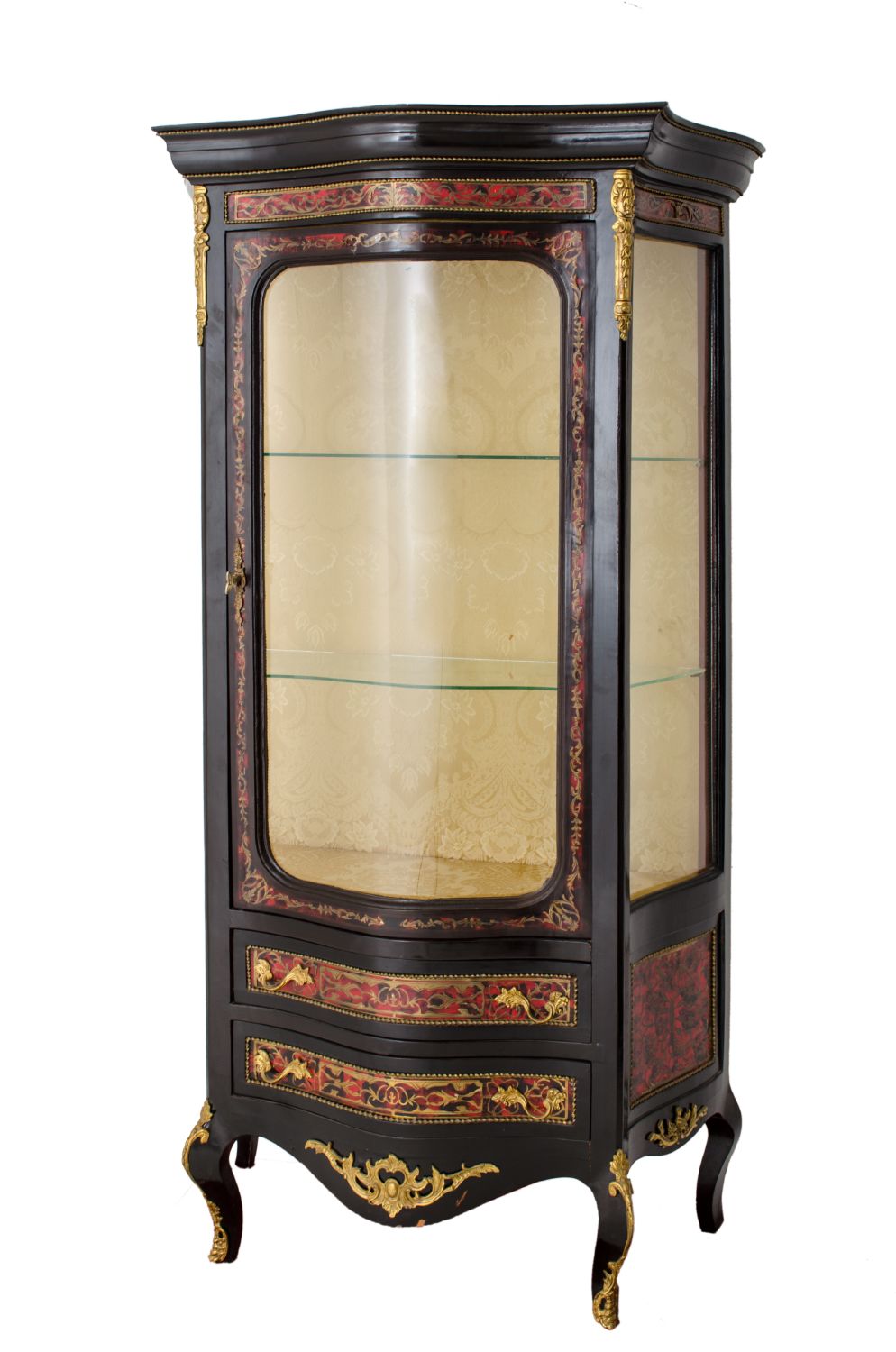VETRINA stile boulle in legno ebanizzato e tartaruga con tarsie in rame,...