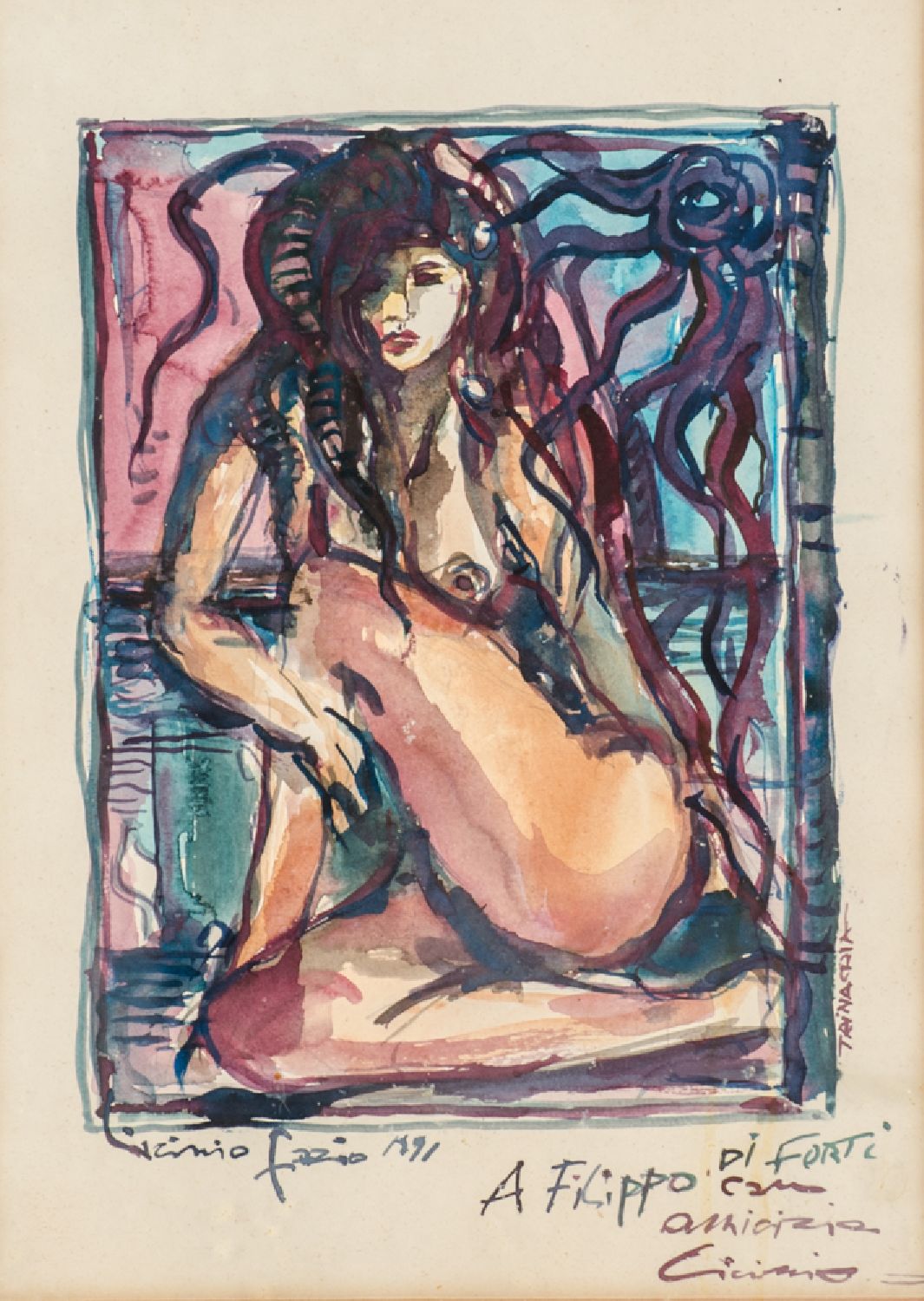 LICINIO FAZIO (Furci Siculo 1953) ACQUARELLO su carta "nudo femminile", firmato in basso a sinistra. Datato 1991 Misure: cm 24 x 34