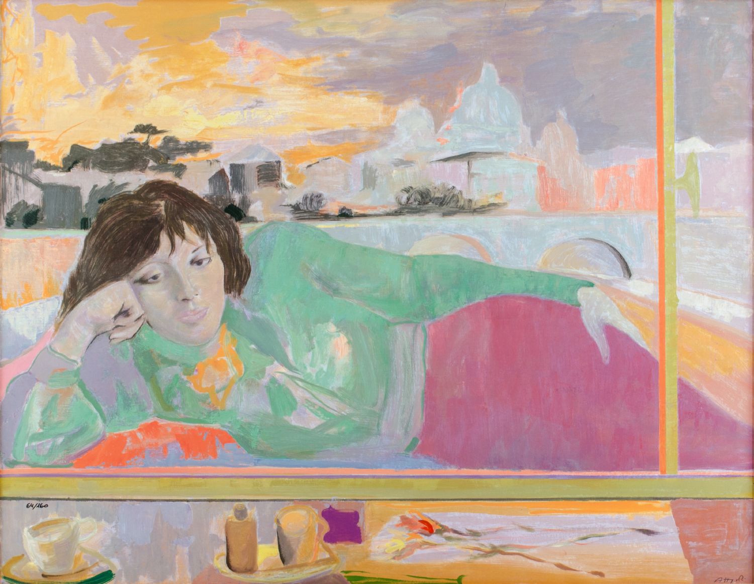 UGO ATTARDI (Sori (Ge) 1923 - Roma 2006) SERIGAFIA colorata a mano "figura femminile sdraiata", esemplare 64/160. Misure: cm 90 x 70