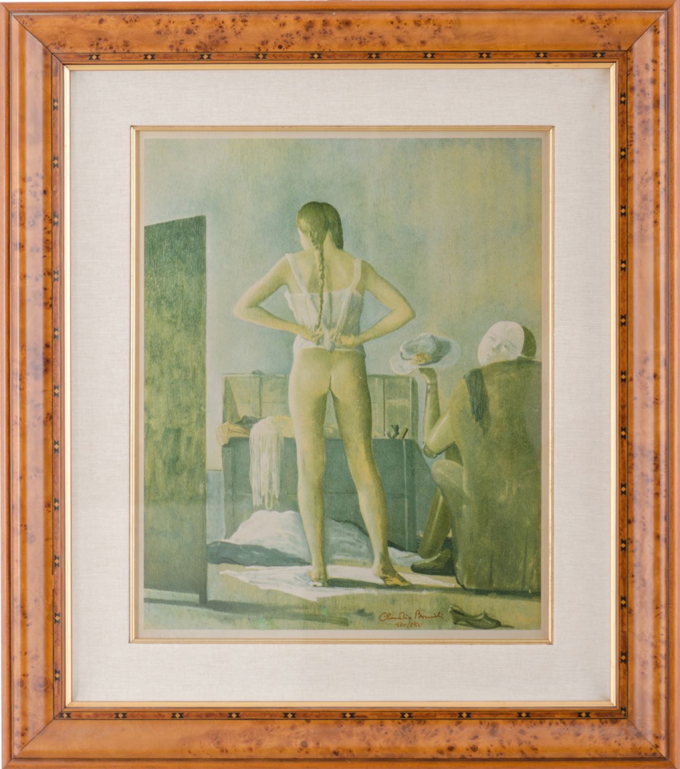 CLAUDIO BONICHI (Novi Ligure (AL) 1943) LITOGRAFIA su lamina in argento 925 "il corsetto bianco", esemplare 170/250 (con certificato di autenticita'). Misure: cm 33 x 40