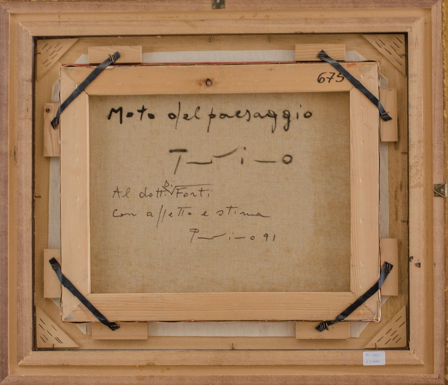 SALVATORE PROVINO (Bagheria (Pa) 1943) OLIO su tela "moto del paesaggio", firmato in basso a destra (Autentica dell'artista su foto). Datato 1991 Misure: cm 50 x 40