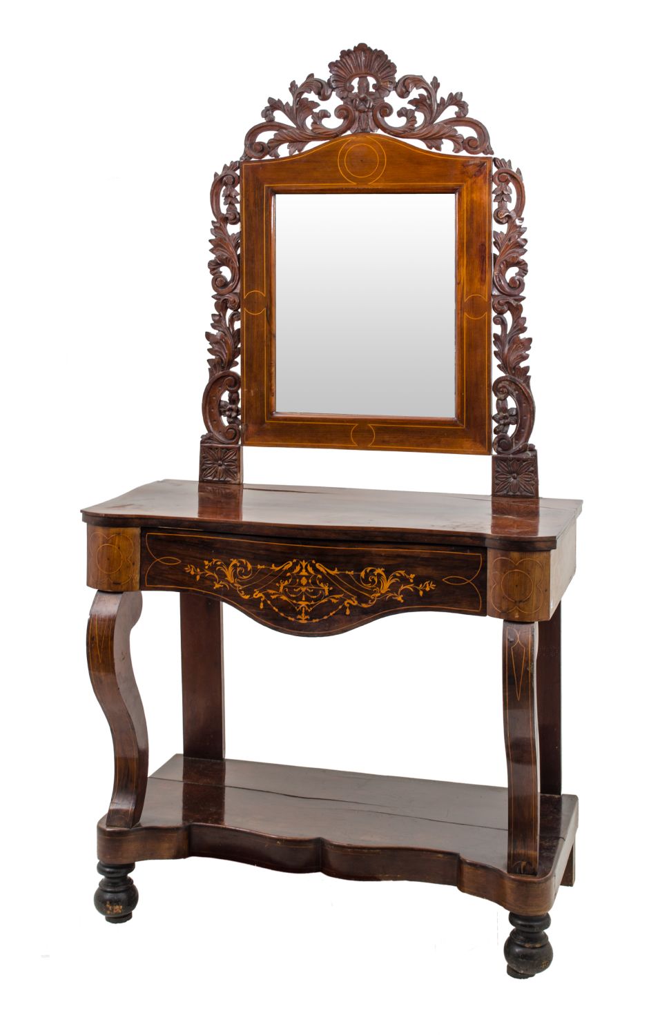 TOLETTA Isabellina in mogano e palissandro con tarsie in bosso, cassetto centrale. Spagna XIX secolo Misure: cm 102 x 43 x h 200