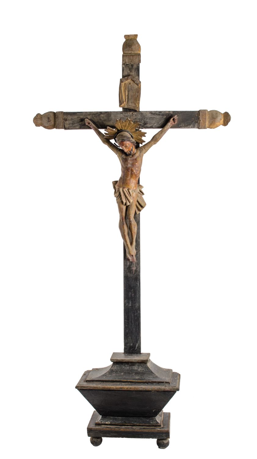 CROCIFISSO da tavolo in legno laccato (Cristo h cm 36). Spagna XVIII secolo Misure: h cm 101